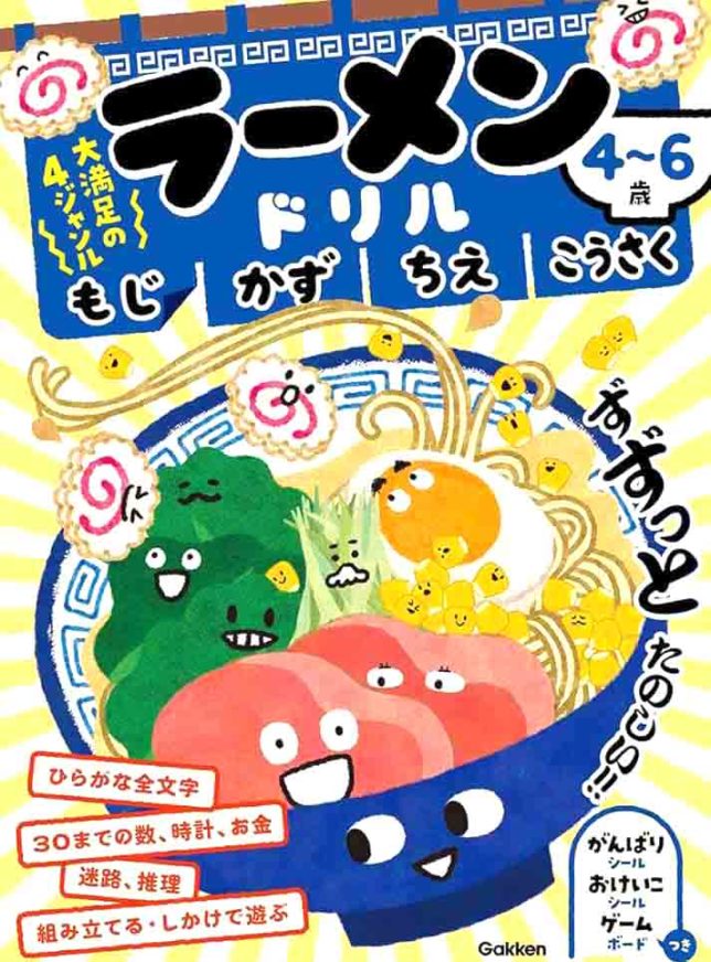 NEWS 「ラーメンドリルもじかずちえこうさく 4~6歳」 saito kaori 2026-03-19 学研の幼児ワーク「ラーメンドリル もじ かず ちえ こうさく 4~6歳 」のイラストを担当いたしました。子どもたちに大人気のラーメンで学べる楽しいドリルです。